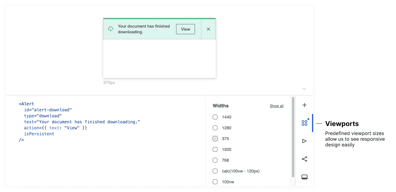 We have predefined widths that help us see how our components work depending on design needs and responsive behavior. We have additional documentation on responsive breakpoint patterns.