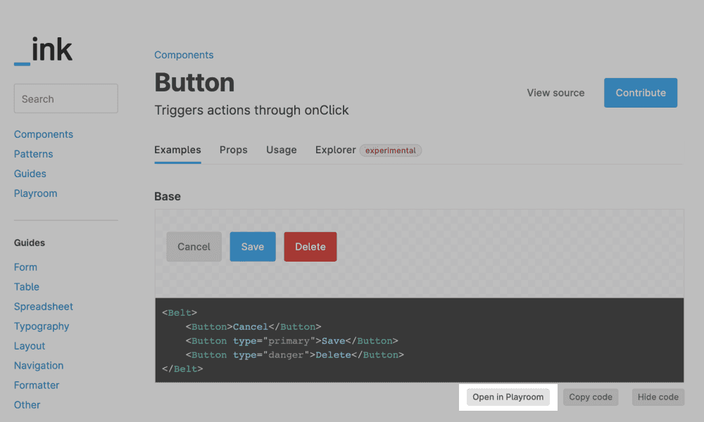All the example code snippets we display within our component documentation can be opened in playroom.