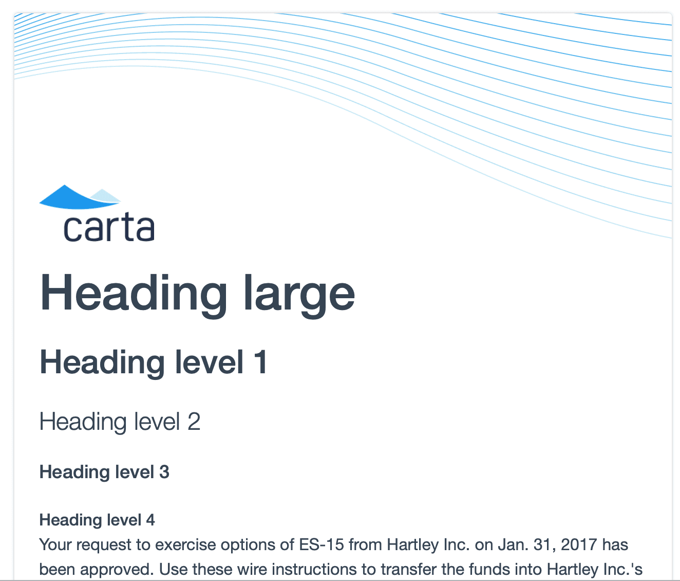 Some emails sent form Carta do not use the design system and are rendered as plain text. These are not broken and are used for special cases.